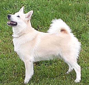 Froya is an amazing girl, sired by our new Norwegian import Tomba. She got her championship at barely one year of age. On her way to this title she won several Best Puppy in Group wins, as well as two Best Puppy in Shows! Froya is also a very clever girl and remarkably responsive and highly trainable. She is a truly typical Norwegian Buhund with her perpetually sunny and affectionate nature and strong herding instinct . We are SO very proud of her! now retired Froya lives with a full brother and a grandson in Toronto . she is a phenomenally influential brood-bitch for our lines .